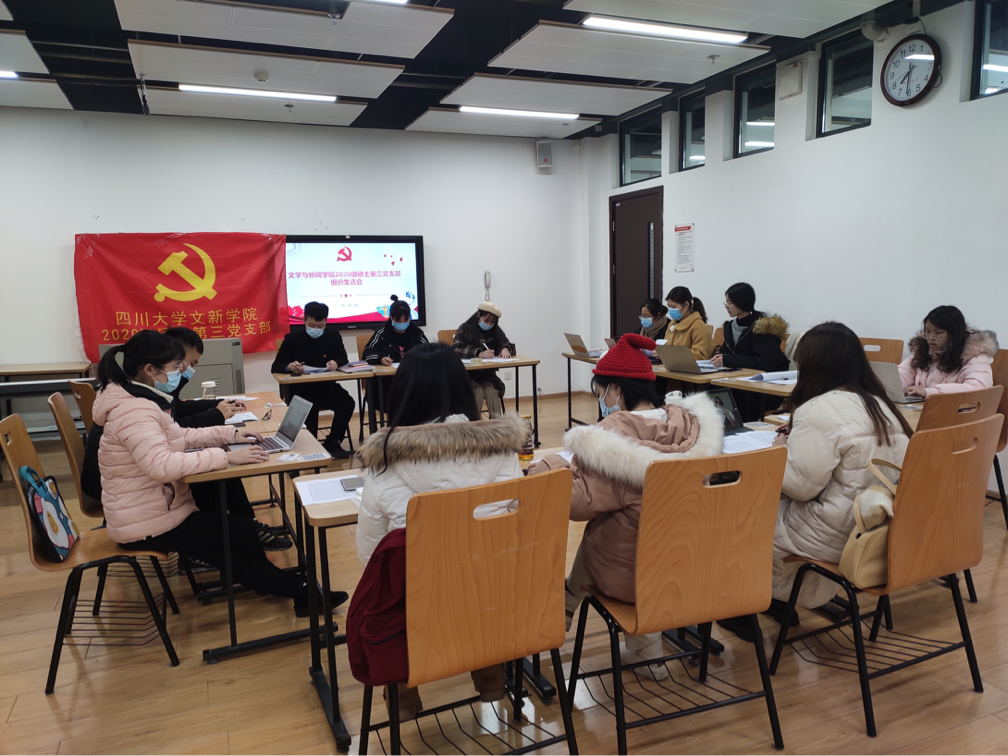 2020级硕士第三党支部于文科楼一区116教室召开2020年度组织生活会。会前,全体党员集体学习了《关于巩固深化“不忘初心、牢记使命”主题教育成果的意见》和《新形势下党内政治生活的若干准则》(以下简称《意见》和《准则》),党支部书记杨盛果同志作了工作报告。会上,全体党员对2020年度的党支部工作和班子作风进行了评测,并开展了批评和自我批评,进行了民主评议。