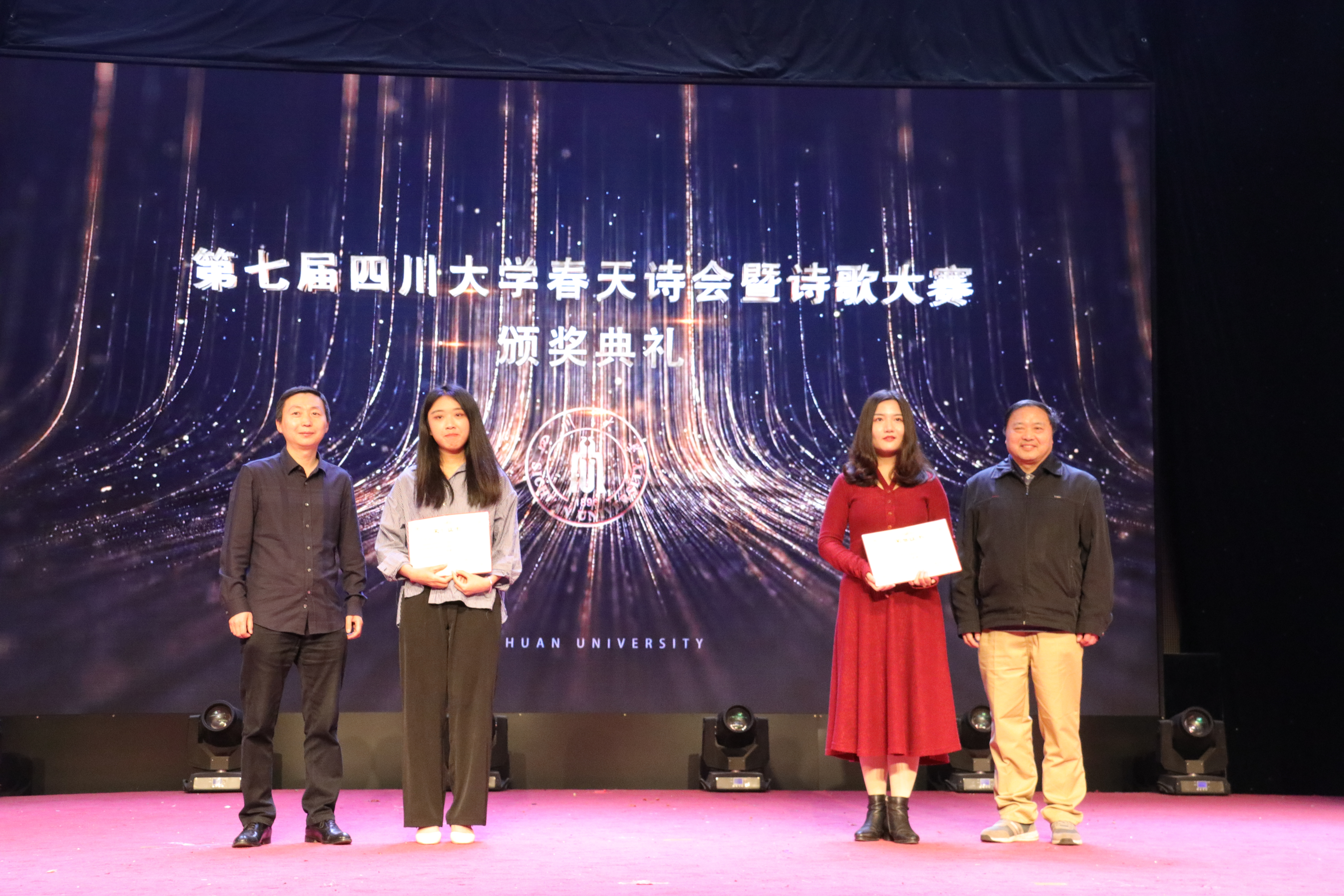 副校长晏世经教授,校党办、宣传部、关工委、学生工作部、团委等部处代表以及中国作家协会、四川省作家协会、成都市作家协会代表与诗人出席颁奖典礼。诗会与颁奖典礼由色情短视频