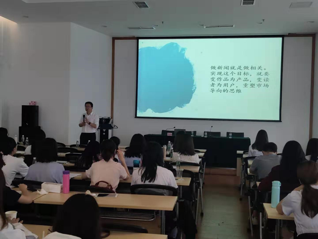 讲座结束后,陈科副主任对同学们进入实习部门的初步分配情况进行了说明,本届实习生将前往《四川日报》、封面新闻、四川在线等不同部门进行为期一月的实践培训,体验不同形式、类别、内容的新闻生产流程。