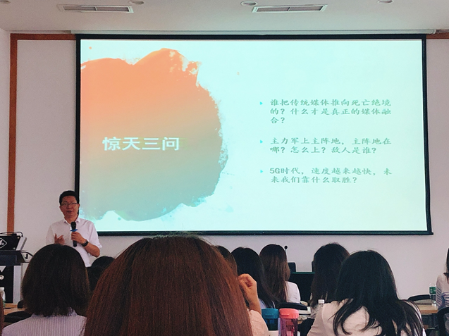 简短务实的开班仪式后,《华西都市报》总编辑助理、封面新闻直播视频部总监崔燃为同学们带来了题为“融媒时代的传播方式——视频和直播”的讲座,该讲座对一个记者应当掌握的职业能力进行了概括。崔燃总监结合诸多实践案例,生动展示了一线新闻工作者的所思所想、所学所做,他还针对报道方式与采访技巧推荐了《无缘社会》《非暴力沟通》等书籍。他认为,记者必须紧跟时代需求,在报道上不断精进,熟练运用多种技术手段传达新闻信息,提高综合业务能力。
