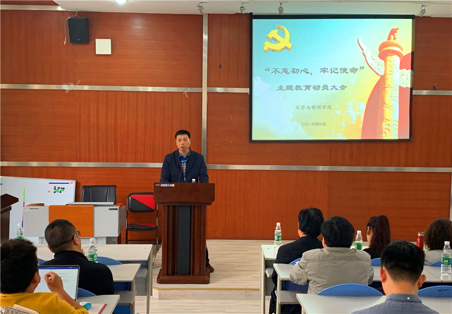 二是准确把握总要求和目标任务,以主题教育为契机推进学校“两个伟大”建设。围绕“十二字”总要求和“五句话”目标,学院要坚持立德树人,聚焦贯彻落实习近平新时代中国特色社会主义思想和习近平总书记关于教育的重要讲话和指示精神、健全“三全”育人的体制机制、加强思想政治工作和思政课建设等,开展学习教育和调查研究,着力解决基层党组织建设、教师队伍建设、意识形态工作、学生社团等工作中存在的有关突出问题。自觉把开展主题教育同落实学校第八次党代会部署结合起来,同推进学校“双一流”建设结合起来,同推进“两学一做”学习教育常态化制度化结合起来,同庆祝新中国成立70周年等各项活动结合起来,确保主题教育取得扎扎实实的成效。