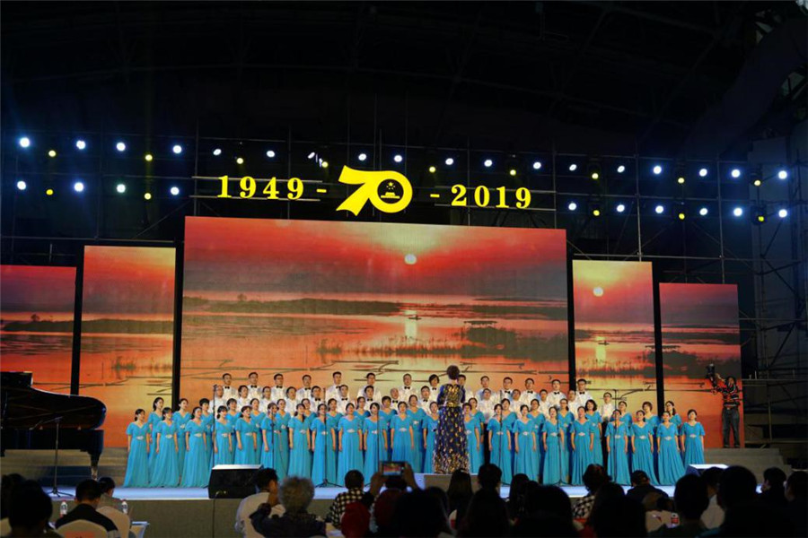 比赛现场,各支参赛队伍先后合唱《长江之歌》、《我和我的祖国》、《保卫黄河》、《爱我中华》等经典曲目,共庆新中国成立70周年。色情短视频