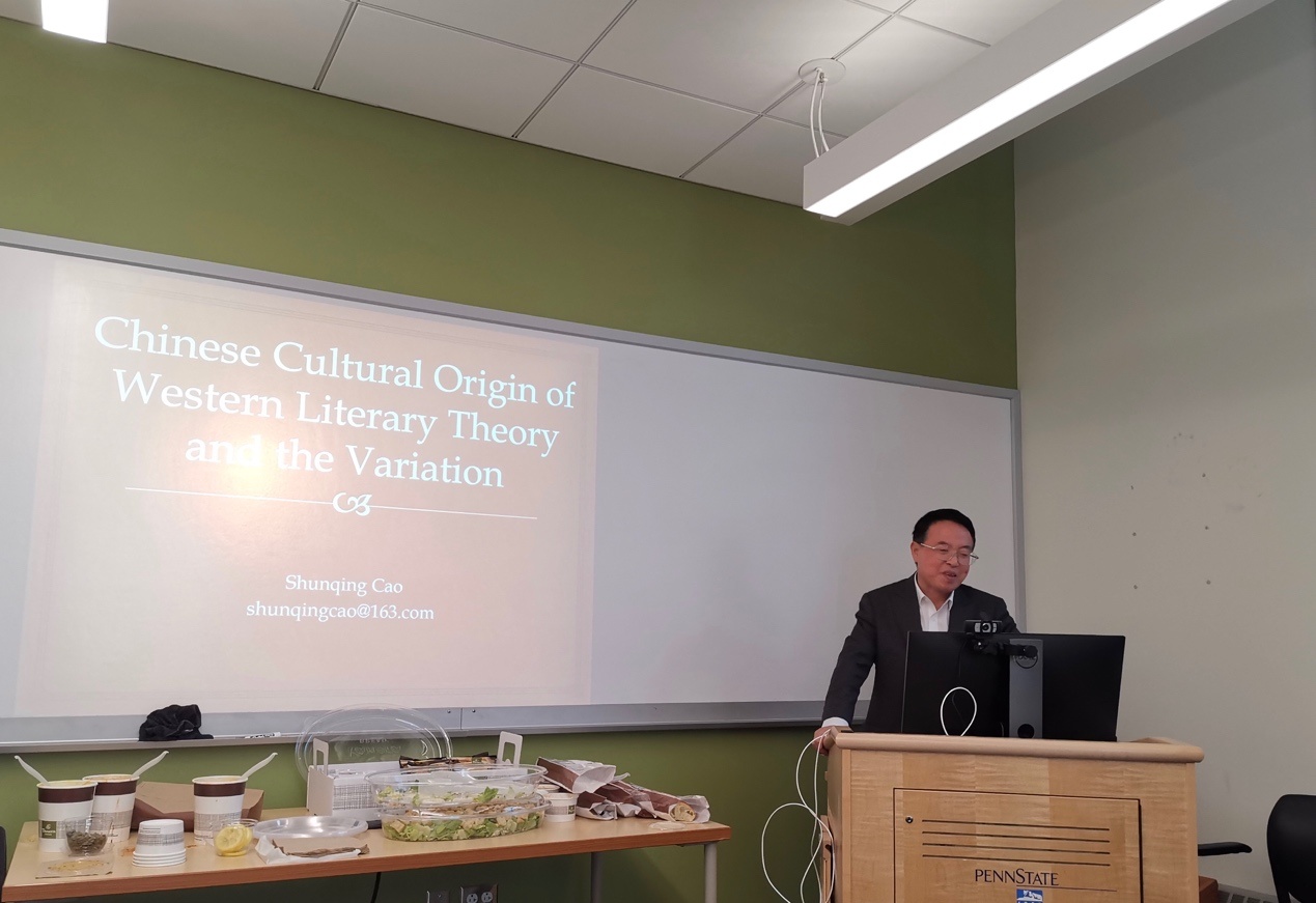 “中国语言文学与中华文化全球传播”学科群首席科学家曹顺庆教授带队,学院副院长周维东教授、副院长胡易容教授、中国比较文学学会副秘书长赵渭绒副教授、国际英文期刊Comparative Literature: East & West编辑部主任庄佩娜副研究员、院长助理曾元祥副教授以及博士生杨清、张帅东组成的代表团,前往美国宾夕法尼亚州立大学进行学术访问,参加“第8届中美双边比较文学论坛”、“变异学与变异性工作坊”等学术交流活动,并分别与宾夕法尼亚州立大学比较文学系、亚洲研究学系、非洲研究中心、传播学院的教师会面,进行学术交流与合作洽谈。