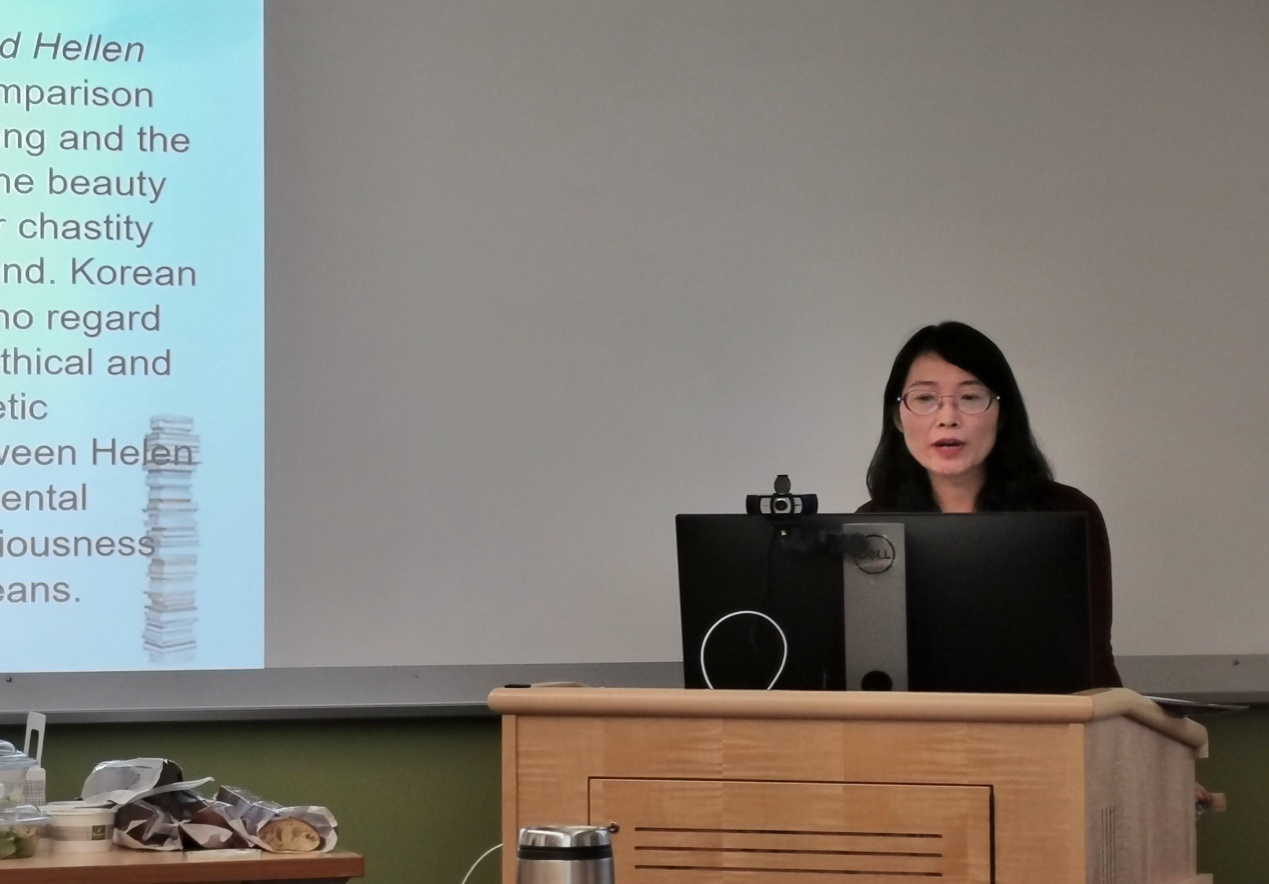 赵渭绒副教授在汇报“《春香传》在中国的变异研究”(“Variation Study of Chunhyangjeon in China”)中,从历时研究的角度梳理了韩国古典文学名著《春香传》在中国流传过程中出现的种种变异现象,并分析了其变异背后的社会历史原因。