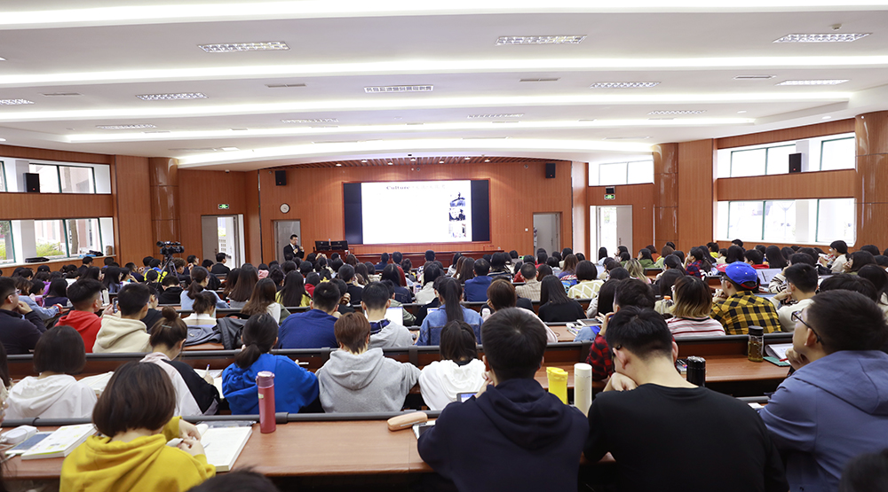 王晓路教授从“文化的界定”出发,通过多重历史线索和比较的视野阐述中国文化整体延续的轨迹。他从多个层面梳理并阐述了各文化区域的群体从其早期的地理定位时期起,一般都以适应性和创造性的生存方式构成各自不同的发展路径,而这一方式也与文化特质的生成和演进形成对应性关系。凭借丰富的知识面,并结合相关数据与实例,他闸明了中国文化的发展是一个与异域文化不断交往、碰撞、互识、借鉴以及融合的过程,其语言、服饰、食材、精神产品形式等诸方面都存在着多重的历史线索。王晓路教授强调,文化史首先也是日常生活的历史,其物质文化的变化不仅与观念演进同步,同时也与文化区域的民俗文化特征、品格以及情感表达方式相关。日常生活与历史文献所内涵的文化精神交织形成的不同侧面文化史,塑造出一个区域文化的时代性特征。讲座最后,他结合国家竞争力要素,明确提出,中华民族在漫长的历史进程中逐步摸索出了一条适应自身且具有鲜明特色的发展道路,中华文化的发展繁荣是中国文化复兴的必要条件。王晓路教授的讲座不仅生动形象,而且融会贯通,讲求学理,将学术理论与社会文化事件、历史线索相结合,有理有据、有例有趣,其知识的深度与视野的广度给全场师生留下了深刻的印象,引起了现场一次次热烈掌声。