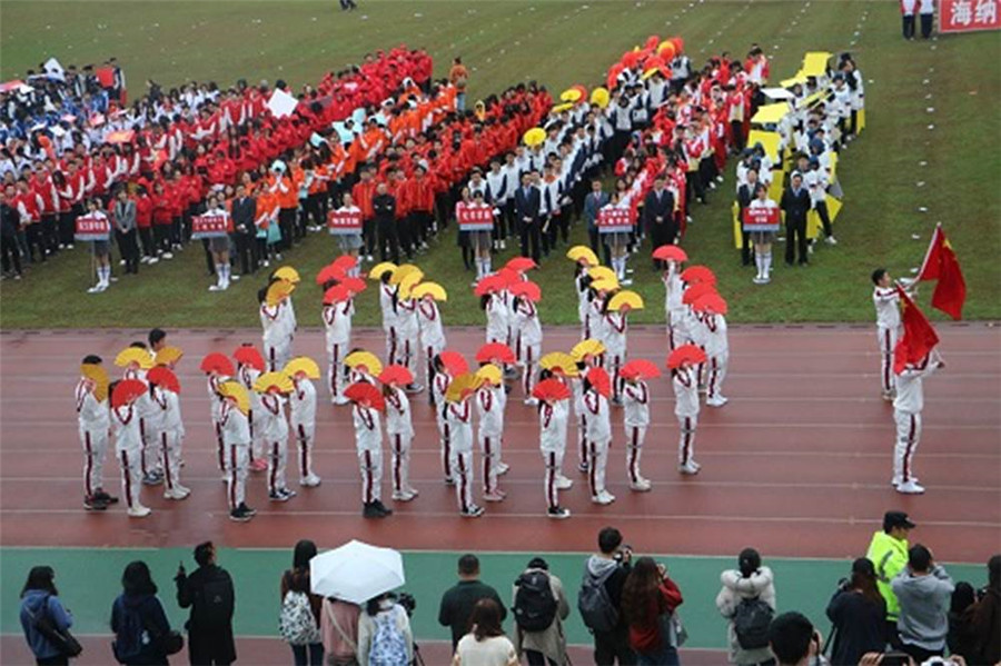 开幕式上,红旗队护卫着国旗、校旗、校徽,以及“海纳百川、有容乃大”的校训展牌和“严谨 勤奋 求是 创新”的校风展牌入场。随后,来自各学院的35个代表方阵依次进入运动场。色情短视频