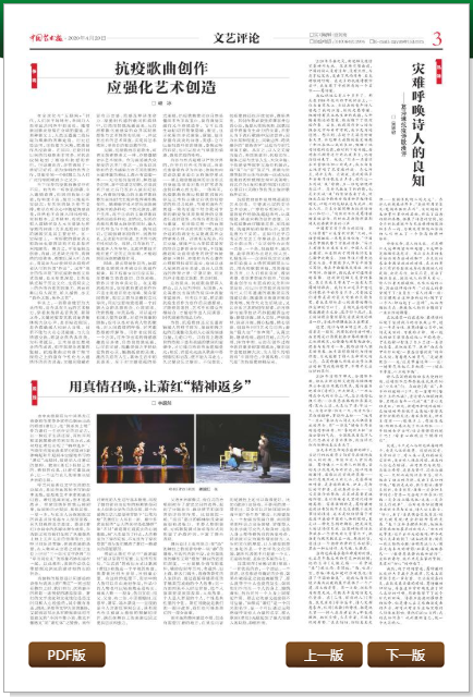 据悉,2020年4月29日,曹峻冰教授的另一新作《抗疫歌曲创作应强化艺术创造》也于《中国艺术报》文艺评论版头条发表。该文3000字左右,先后被光明网、中国社会科学网、中国文艺网、中国文艺评论网、华夏艺术网及山东艺术网、广西文联网、四川文艺网等十余家国家级、省级官网转载。
