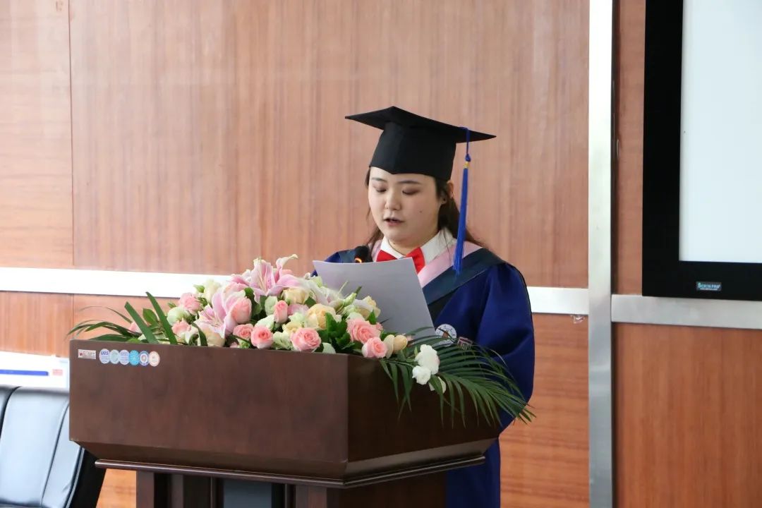 2017级新闻学专业硕士研究生田方圆代表毕业生感谢学院的悉心培养、老师们温暖的教导陪伴以及教务老师的辛勤付出,并向母校和学院送上真挚的祝福。她说,在这个特别的毕业季,祝愿所有的毕业同学在日后的学习和工作中能够闪闪发亮、直挂云帆、乘风破浪。