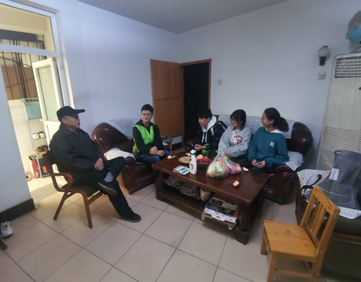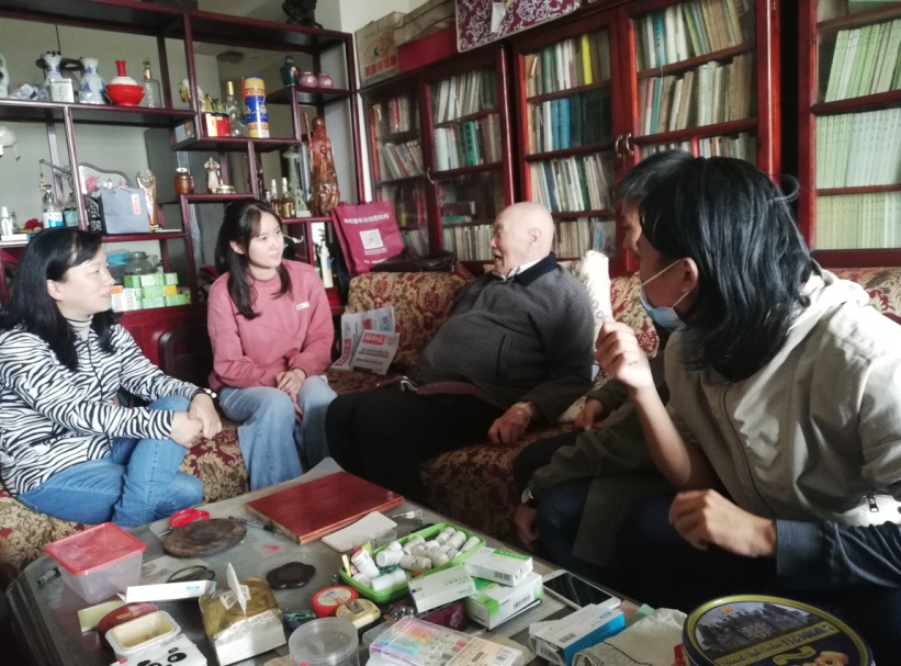 王绿萍教授家清简淡雅,她虽耄耋之年亦笔耕不辍。志愿者们向王教授及先生郑教授送上水果等慰问品后,这对年逾八旬的贤伉俪关切地问询了志愿者们的学习与生活情况。王绿萍教授讲述了自己教书与治学历程,并向志愿者们介绍了研究新闻史的近况。与王老师的亲切对谈让志愿者们获益匪浅。