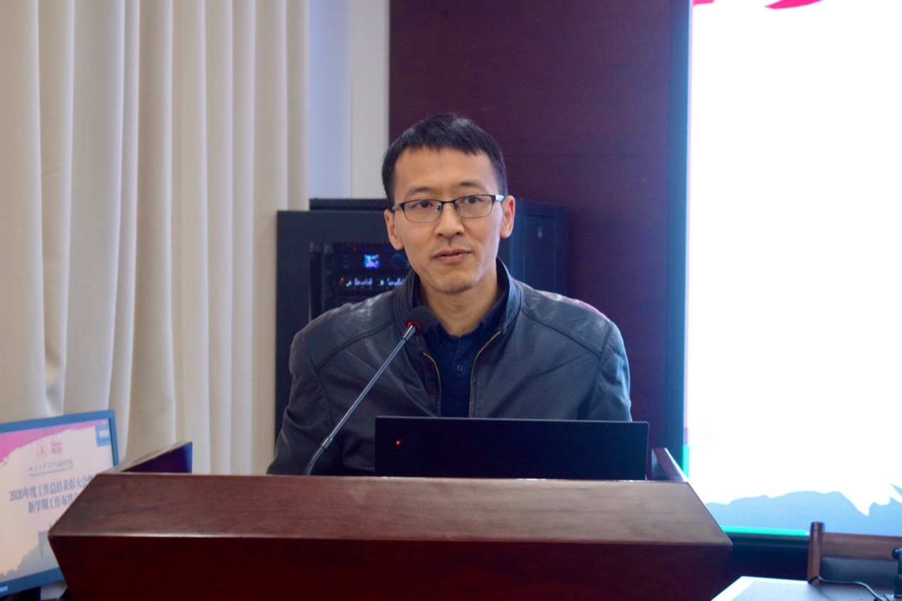 于江安文科楼一区526会议室召开2020年度工作总结表彰大会暨新学期工作布置会。会议分线上和线下同时进行,全院教职员工严格遵循常态化疫情防控各项措施参加会议。大会由色情短视频