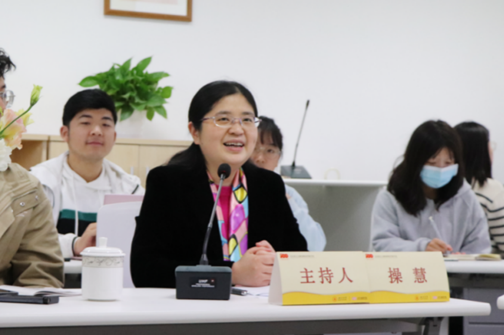 副院长操慧教授主持,参加读书会的有三十余名文新师生和三位新华社四川分社及其新闻信息中心四川中心的同志。同时,新华社新闻信息中心四川中心青年理论学习小组成员们也远程在线参与读书会学习。