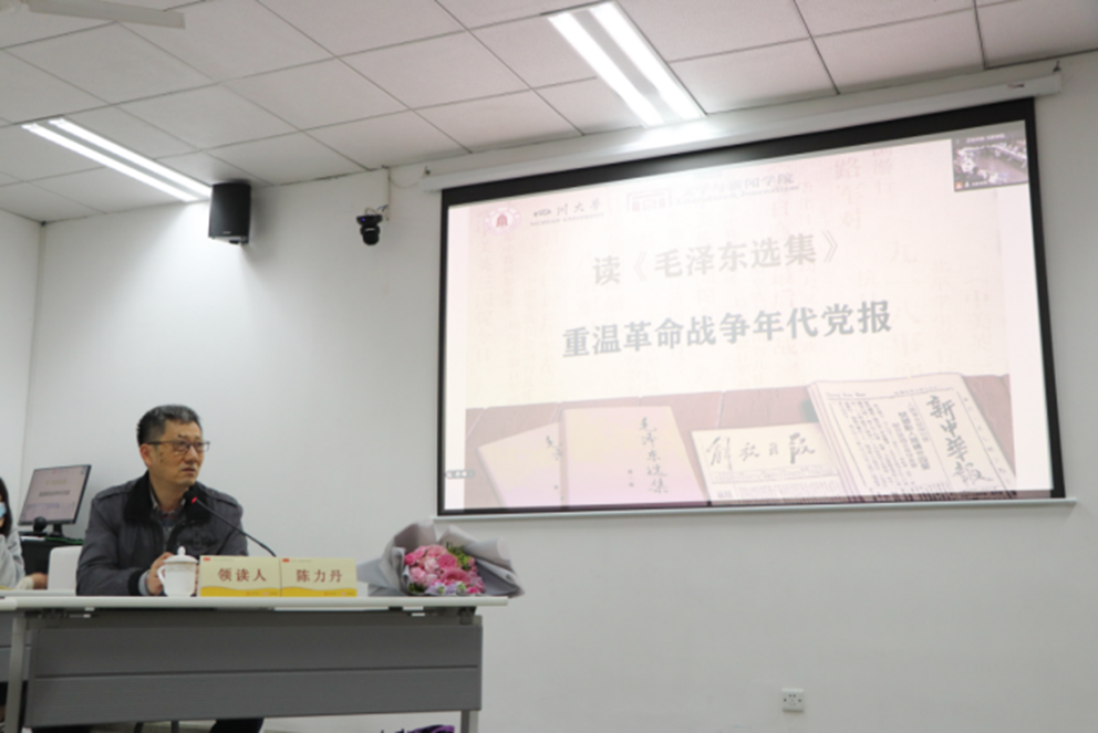 六名同学和刘娜副教授,以及新华社四川分社记者吴晓颖先后就《毛泽东选集》文章和党报报道的阅读心得发言,他们从报道文本、新闻实践、新闻思想等不同方面分享了自己的学习感悟。