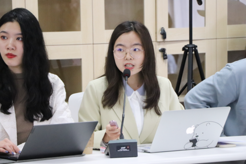 本科生陈宋釜在发言中谈到,当今一些报道中花里胡哨的新闻语言会导致新闻娱乐化与新闻伦理失范。他还结合《毛泽东选集》中的其他文章以及自己在新闻媒体的实习经验,谈了自己对新闻报道的社会责任的认识。