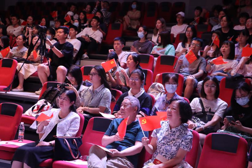 音乐、诗歌、影像…… 多重元素的编织下,朗诵会现场满载着红色记忆,在一幕幕场景与一声声诵读中,刻画着一颗颗赤子心、一份份救国志,引导着在场师生同回那段红色岁月,在字里行间触摸华夏心魂,感念初心使命。观众刘筱卉同学表示,这些音乐和诵读声不断冲击自己的内心,“大家有时候会感觉热泪盈眶,但说不清是为什么。”