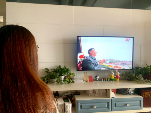 老师观看庆祝中国共产党成立100周年大会电视直播