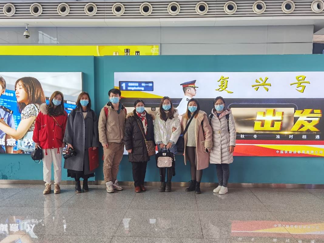 师生在成都东站合影