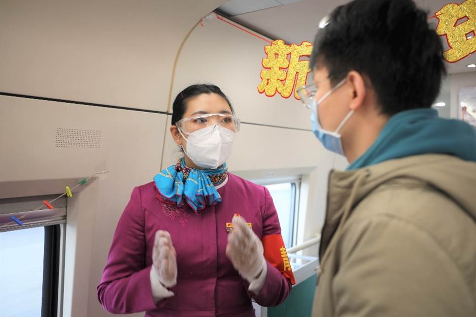 同赵女士一样,到泸州出差的罗先生也对这段旅途非常满意:“动车上的疫情防控工作做得非常到位,比如说各种监测,每一位旅客都会被要求戴好口罩。”更合罗先生心意的,是乘务组为春运旅客特设的餐食服务,“我们可以直接扫座位上的二维码,乘务人员就会直接把饭菜送到座位上,真的非常方便。”