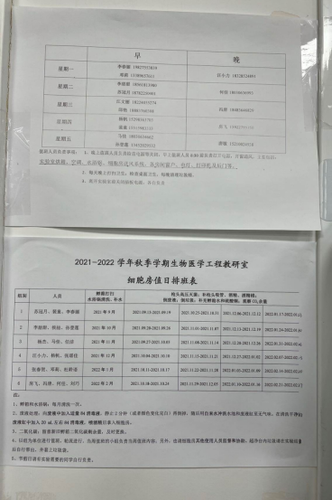 生物医学工程研究室细胞房值日排班表