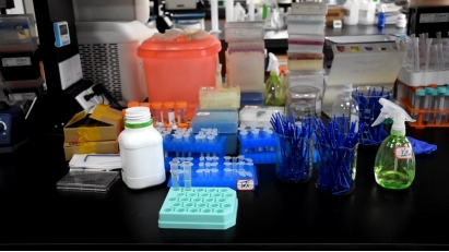 华西基础医学与法医学院公共平台实验室操作台上的器材