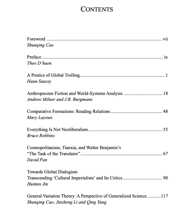 曹顺庆教授在前言中论及选稿标准时提到,此次国际年度文集的甄选严格遵循了以下几项标准:有助于最新理论、实践和方法的发展;最能体现跨文化、多民族、多学科、主题多样性和思辨性特征;多学科领域内学者推荐的具有全球意义的学术成果。西奥·德汉教授亦在序言中指出,比较文学的国际性学科特征在这部文集中得到了淋漓尽致的体现,本文集涉及多类文学作品、文学传统以及多种语言和文学中的现象,文集的共同特征是全球化、资本主义、新自由主义、东西方比较以及世界文学。