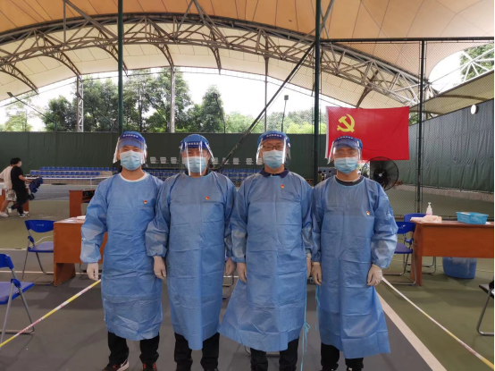 朱至刚、邱树雄、高树博、王长林、骆世查、陈羲、段化鞠等7位教师党员前往江安校区网球场核酸检测点协助完成第一轮全员核酸,负责现场人员组织和检测信息录入等工作。