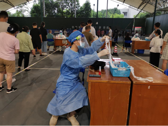 多位教师党员于成都市全员核酸检测首日参与一线志愿者工作。