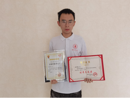 张祖扬同学荣获医院党支部颁发的“优秀志愿者”证书
