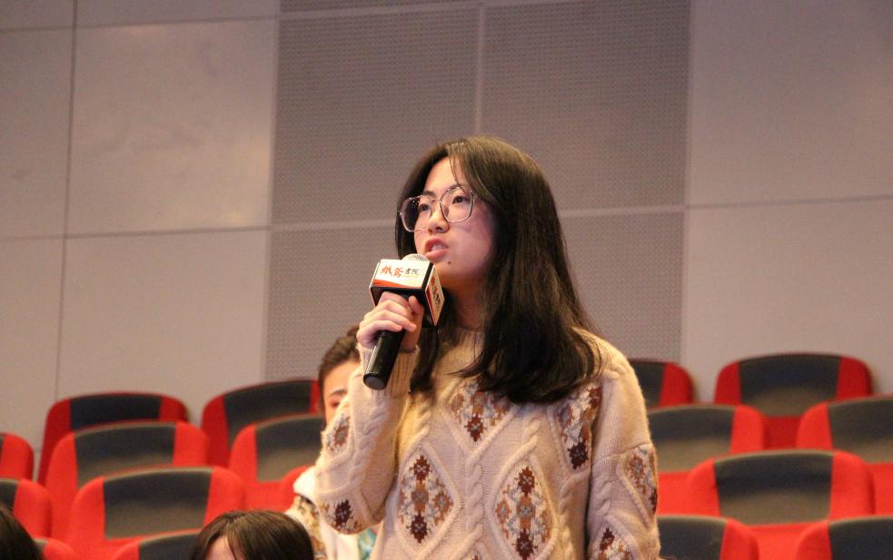 在交流提问环节,同学们热情地向三位嘉宾提问。就“诗歌在中国文化中的地位以及成都在诗坛中的份量”这一问题,叶延滨表示,诗的语言构成了我们的人生观、世界观以及人际关系。成都在中国诗坛占有重要的地位,在成都人热爱诗歌的同时,诗歌也成就了成都人的优雅并为成都增添了光彩。