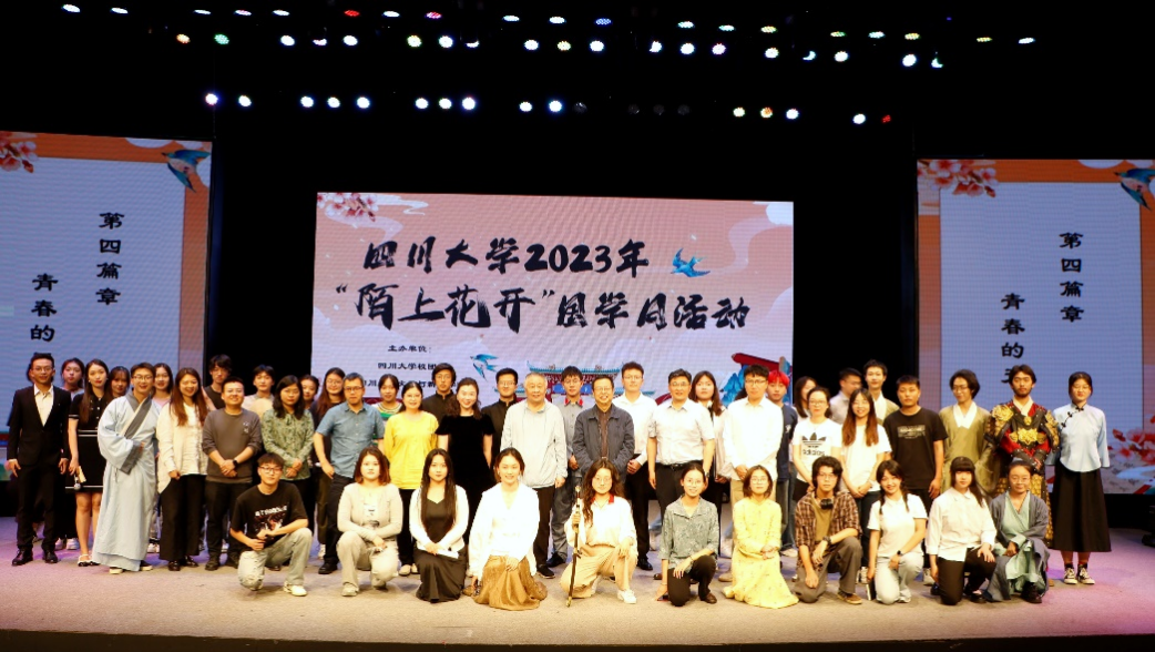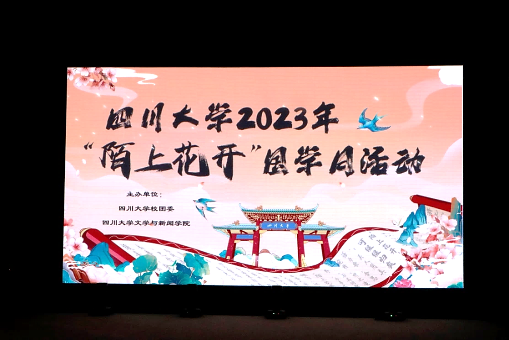 团委书记赵露老师在致辞中介绍,“陌上花开”国学月是学校传承、弘扬优秀传统文化的品牌活动,这一文化符号寄托着川大师生对生命最质朴、最真诚的美好期待。本次诗会通过古典诗词、红色经典、乡村振兴、赞美青春的主题诗歌,创新性地使用诗剧的形式串联主题,让大家在优美的旋律中感受诗歌魅力,感受革命先辈的精神,在文学中学史明鉴,在文艺中学思悟践。
