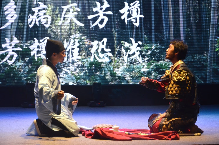 雷雨话剧社讲述了苏轼和两位童子漫步九仙山中,偶遇一山妇唱《陌上花》,在听闻其由来后有感而赋诗三首,并与吴越王钱镠穿越时空相会、对酒互诉衷情、感慨人生世事的奇妙故事。从吴越王的“陌上花开,可缓缓归矣”,到苏轼的“生前富贵草头露,身后风流陌上花。已作迟迟君去鲁,犹教缓缓妾还家”,春意与情思借着诗句,在历史长河中流传千年。精巧的情节构思、精妙的诗句阐释、精彩的舞台演绎共同造就了这章扣人心弦的剧目。