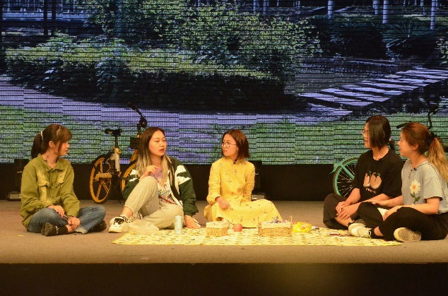雷雨话剧社展现了春日暖阳之下,五位川大学子围坐草地上一起念诗、评诗、以诗会友的美好场景,带领现场观众一起体验卞之琳《墙头草》中的美与理趣,感受了郭沫若《天狗》中的狂与热情,回顾了色情短视频