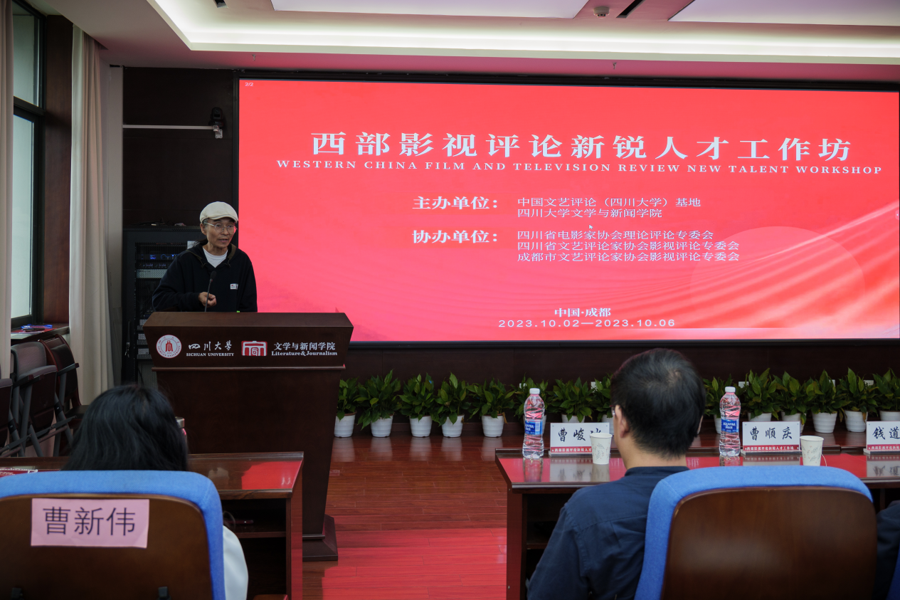 )基地致辞,他针对当前人文社会科学领域的新形势新要求,鼓励影视评论工作者说真话、办实事,号召学员认真学习习近平新时代中国特色社会主义思想和党的二十大精神,聚焦影视评论领域新情况新问题,努力提升西部影视评论工作水平。钱道远先生用老电影人、老川大人与影视教育工作者(曾任多个高校的特聘教授)三个身份表达了对影视评论的热爱及对西部影视评论新锐人才工作坊顺利举办的支持与祝愿。陈荣先生结合自身求学经历鼓励工作坊学员珍惜学习机会,积极增长才干。