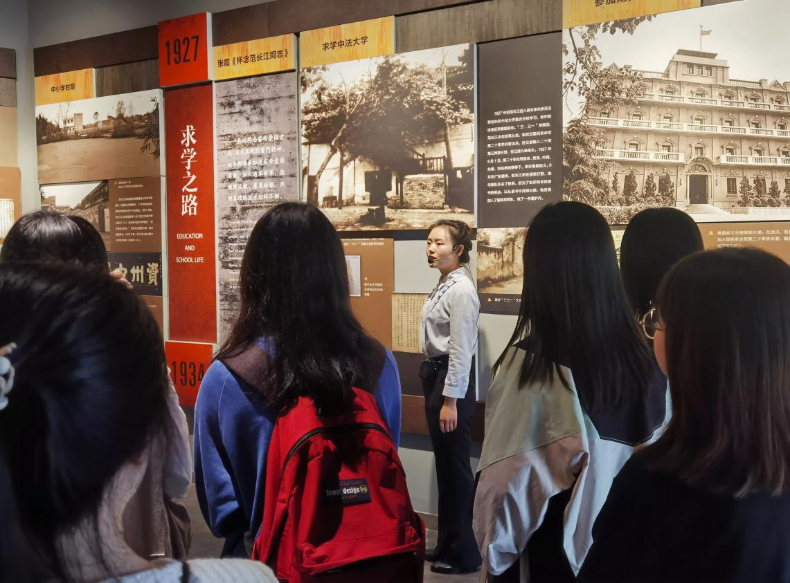 同学们跟随讲解员回顾范长江先生的一生