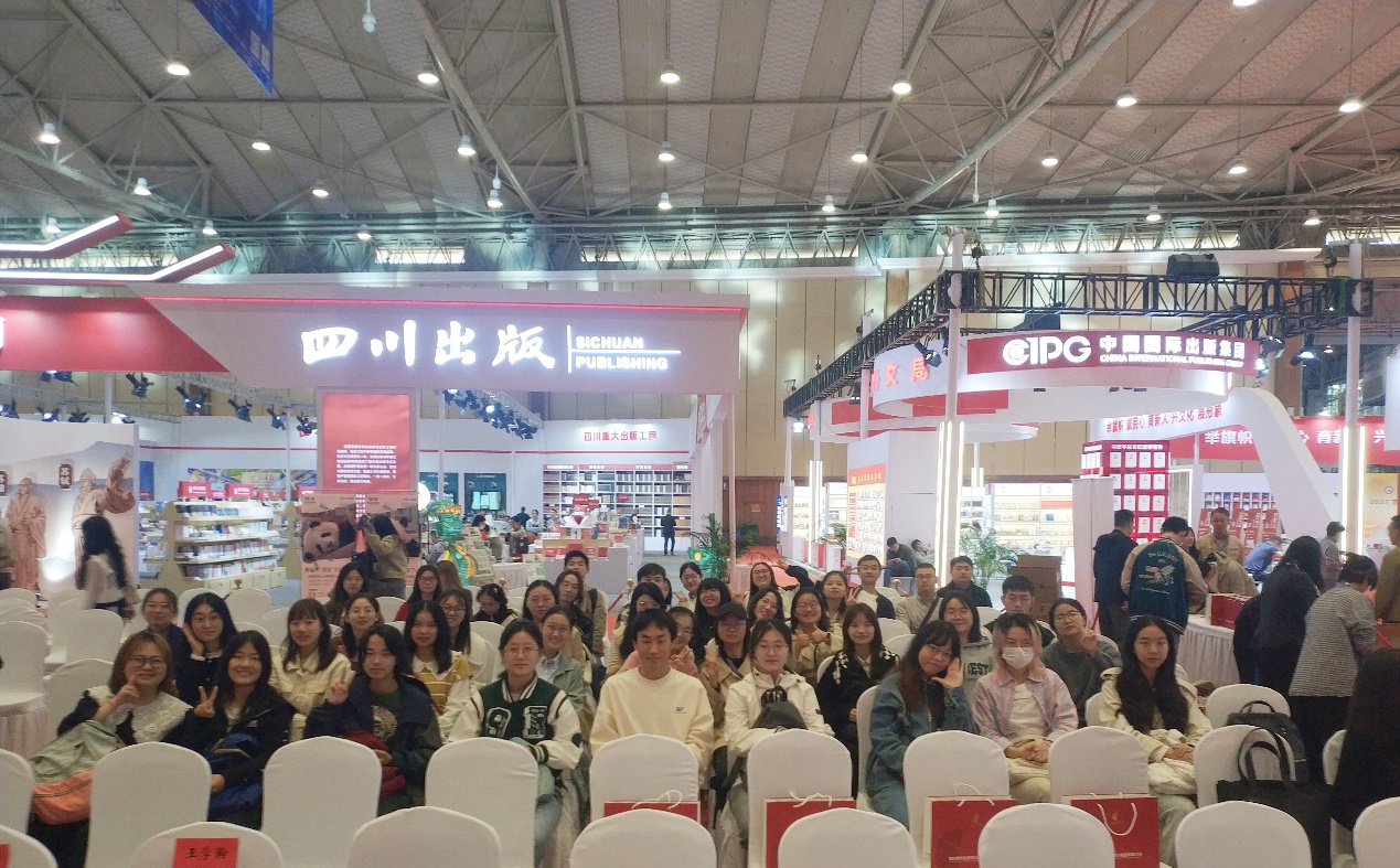 出版学院协办的第四届全民阅读研究年会在2023天府书展上举行。院长李怡教授、党委副书记银浩老师、曾元祥副教授、辅导员段化鞠老师及40位同学,参加了年会活动。