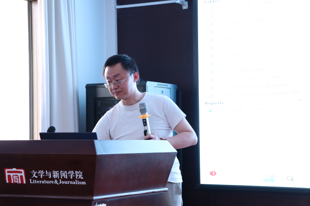 文科讲席教授王兆鹏总结了国内数字人文的发展进展,并重点介绍了数字人文在文学研究领域的应用前景,还指出文学研究之所以要实现数据化,既是顺应大数据时代的发展需求,也是人文社会科学发展的趋势和必然要求,文学研究数据化有利于提升研究的客观性、准确性、可比性等,同时也是学术创新的需求。王兆鹏教授表示,通过发起本次数字人文工作坊,旨在开放交流、创新合作。举办工作坊可以让更多学者了解数字人文、掌握数字人文新技术,也是鼓励人文学者突破传统文学研究范式的新尝试。