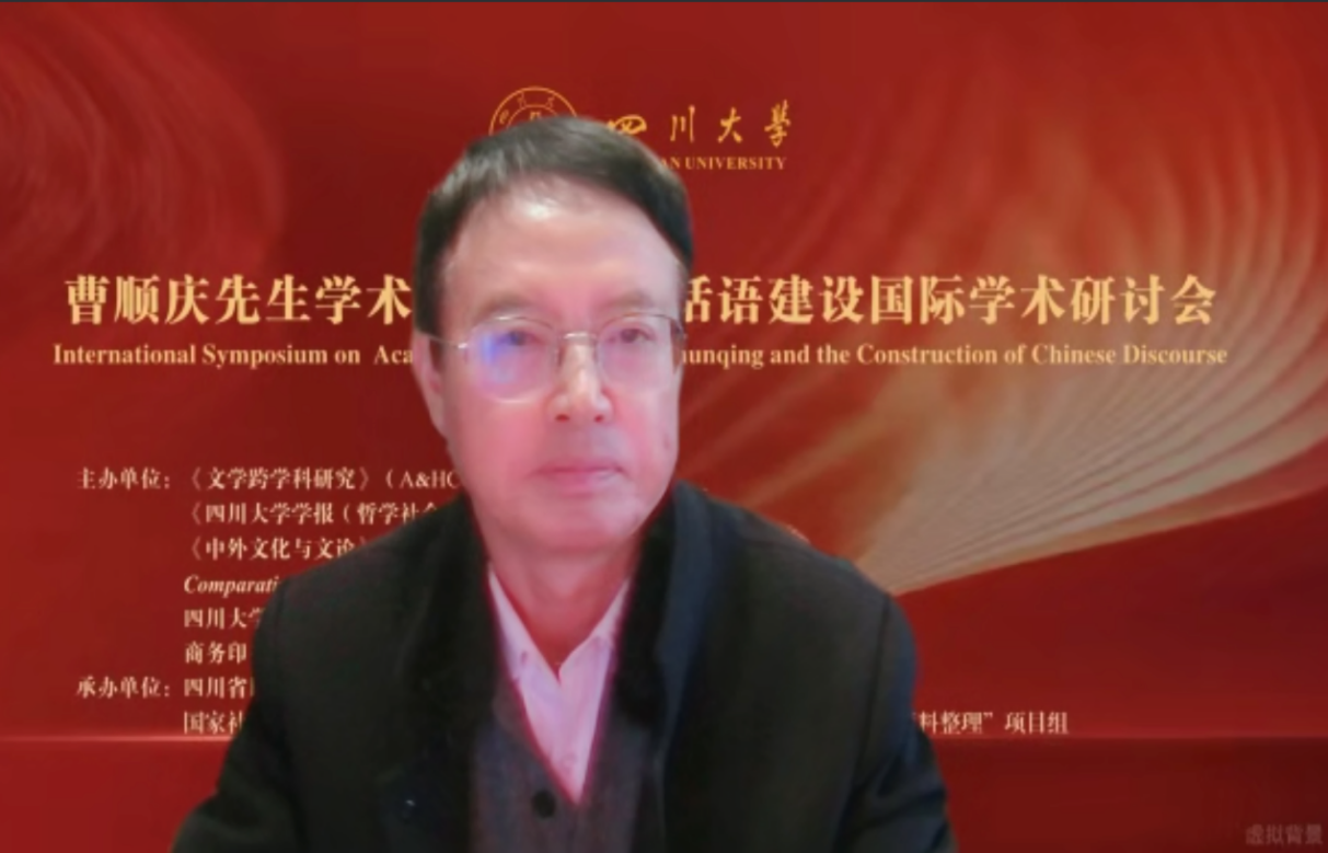 杰出教授曹顺庆致答谢词,他表示:中国学术走向世界,这是一个令人欣慰、令人感慨的重要国际学术动向。今天,我们见证了中外学者携手共进,推动国际学术走向合作共赢,促进人类文明互鉴的一个重要时刻,体会了一次世界性的学术盛宴。