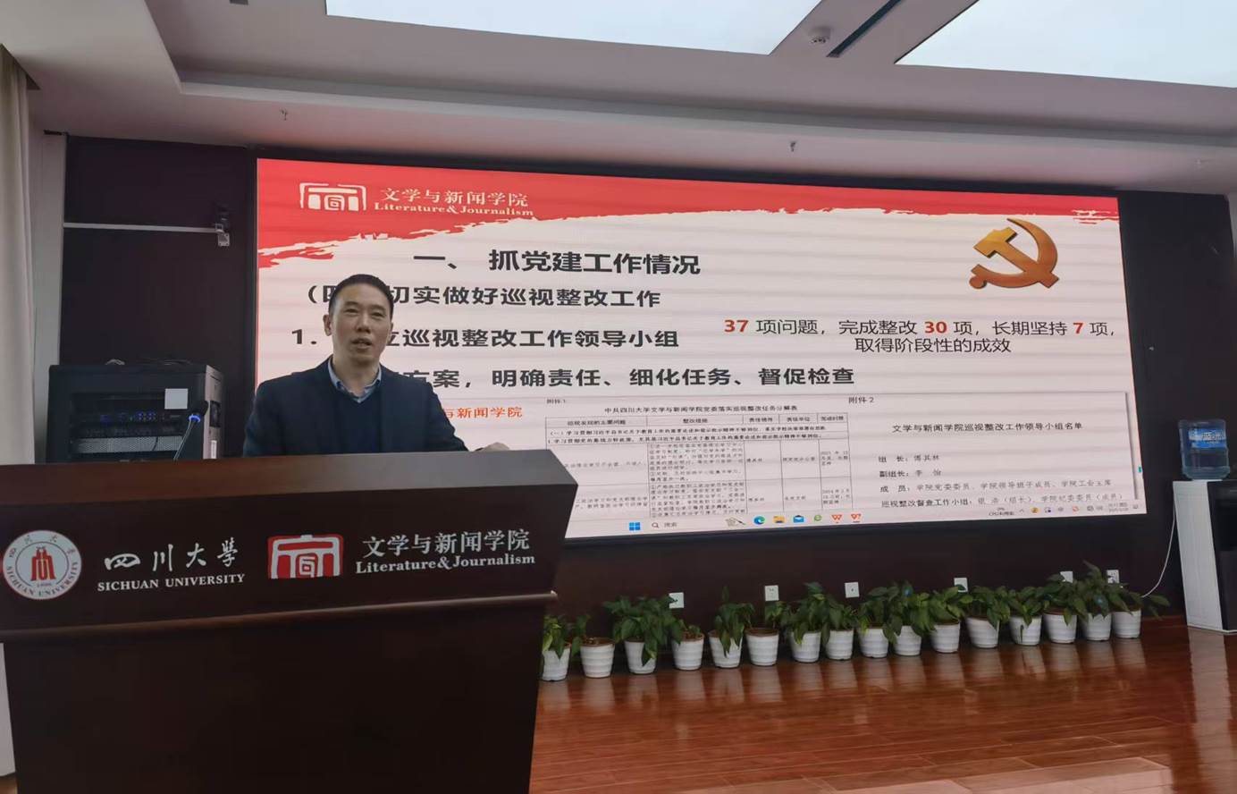 (新闻学院、出版学院)院长的任职通知,并进行了学院2024年度工作表彰,为优秀科研奖、教学优秀奖、优秀青年教师奖、行政管理奖、特别贡献奖、优秀辅导员奖获奖教师进行颁奖。此外,傅其林书记还通报了2024年专业技术职务聘任结果、科级干部换届调整结果与绩效发放相关情况,并对新进教职工进行介绍。