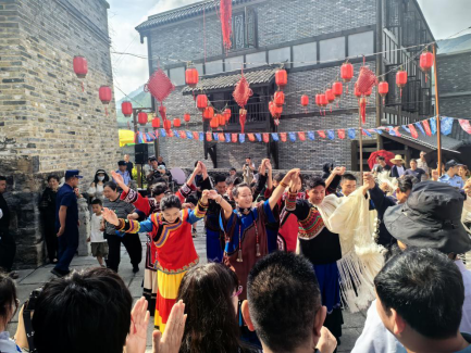 7月16日上午,团队前往海棠镇参加火把节系列活动“海棠依旧·多彩甘洛”非遗文化游园会。游园会在古城北大街举行,丰富多彩的游园活动令人目不暇接:彝族、尔苏藏族、汉族等各民族的民族服饰走秀和传统舞蹈纷纷上演;各民族的特色文化体验项目吸引了大批村民和游客驻足赏玩;海棠腊肉、白酒等农特产品展销活动亮出乡村振兴提振消费新名片,为游客朋友打造了一场民族文化的沉浸之旅。