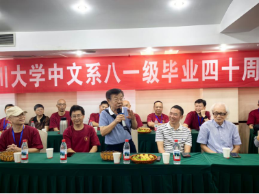 校友代表倪邦文汇报了同学们毕业后的发展与现状。四十年来,校友们在各自岗位上兢兢业业,现多数人已退休,但都尽己所能为国家、为社会做出贡献,没有辜负时代的期望和母校的培养。他动情地说,川大是大家共同的精神家园,即使毕业多年,同学之间依然保持着深厚的情谊,同喜同乐、同担风雨。他祝愿每一位校友身体健康,也衷心希望母校与母院再创辉煌,“未来的岁月里,我们仍愿尽己所能为母校增光添彩。愿五十年、六十年、七十年时,我们依然相聚在一起!”