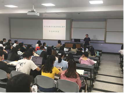 在新闻传播学类的专业宣讲会上,编辑出版学的曾元祥副教授首先对出版行业的发展情况作了详细介绍,他认为尽管数字化对传统出版业产生了一定的影响,但编辑出版在现代出版业的发展中依然不可替代;接着他分别对编辑出版学的专业课程设置、学科特点、师资力量、教学特点等方面做了全面介绍。曾老师认为:“学习和从事编辑出版专业需要情怀,这个专业可能不好学,但一定会带来成就感。”他在最后建议同学们根据自己的兴趣选择专业,并欢迎有志于编辑出版行业的同学填报该专业。