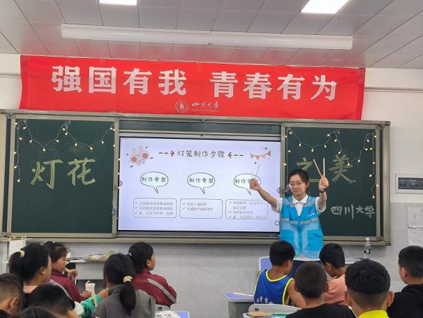 此外,团队还开展了丰富多样的趣味课程。手工课上,从骨架搭建到宣纸装饰,孩子们用自己的双手领略灯花之美;实验课上,从大气原理到喷泉现象,老师们用一个个有趣的现象讲述科学原理;地理课上,从各地美食到全国地图,生动的图片、视频拓宽了孩子们大山之外的视野。
