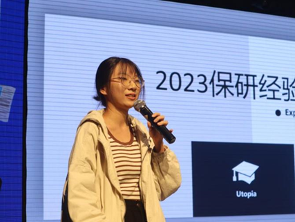 新闻与传播专业的傅雅君同学以保研边缘如何稳住心态为主题展开了自己的分享,讲述了相对普适性的保研流程和时间线,为大部分的同学提供了有效的参考,并建议大家保持一颗平常心,减少内耗,多把自己的想法付诸行动。
