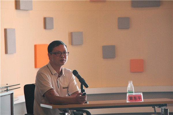 图1:《川报观察》主编曾东平讲解“编辑的政治意识与编务技巧”