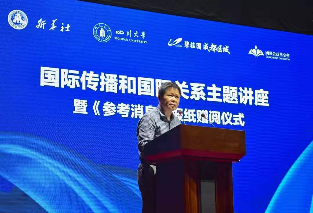 随后,新华社四川分社副社长陈天湖致词。他表示,此次赠阅旨在向更多师生传播权威资讯,传递主流媒体声音。