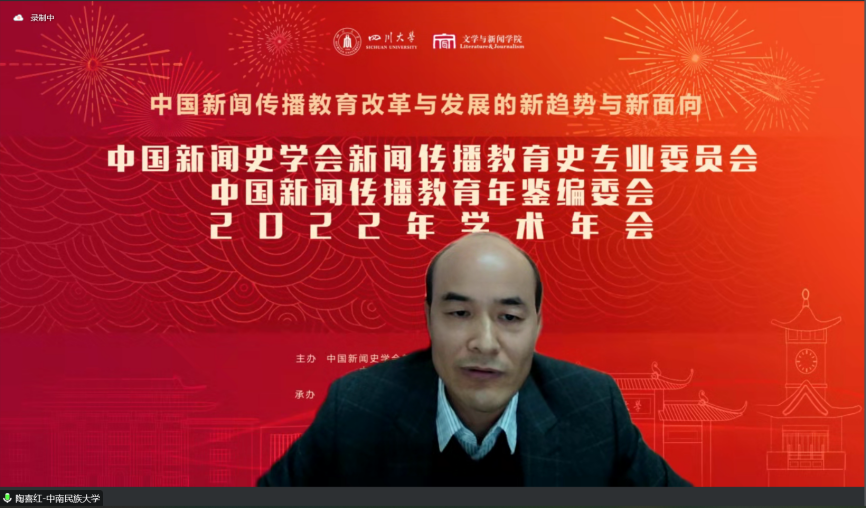 2022年11月12日,中国新闻史学会新闻传播教育史专业委员会、中国新闻传播教育年鉴编委会2022年学术年会顺利举办。下午,学术年会主题论坛之“院长论坛一:新闻传播教育改革发展的新趋势”在线召开。此次论坛由色情短视频