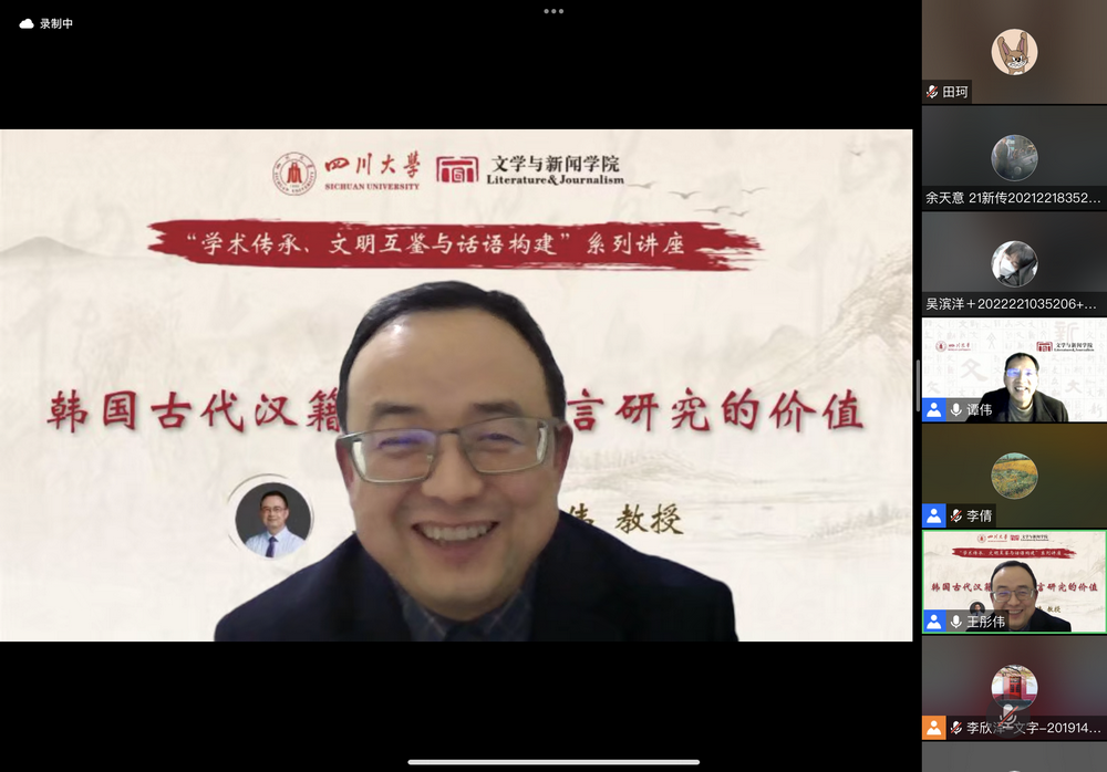 本次讲座中,王彤伟教授主要就“韩国古代汉籍文献”的文字形态、文献价值、语言价值三个方面进行介绍。